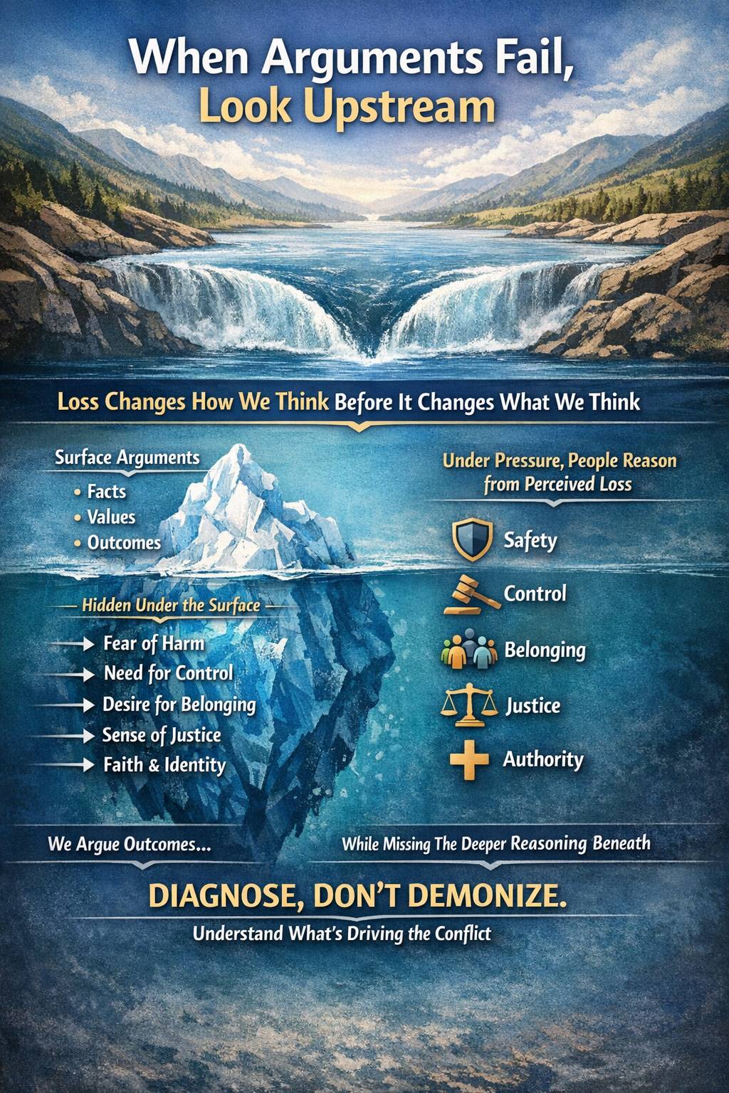 When Arguments Fail, Look Upstream Most of the conflict we’re experiencing right now, personally, socially, and politically, does not come from people wanting different outcomes. It comes from people reasoning from different places under pressure. That may sound subtle, but it explains a lot. We tend to assume that disagreement means one side is misinformed, immoral, or acting in bad faith. So we argue facts. We argue values. We argue outcomes. And when that does not work, we argue harder....